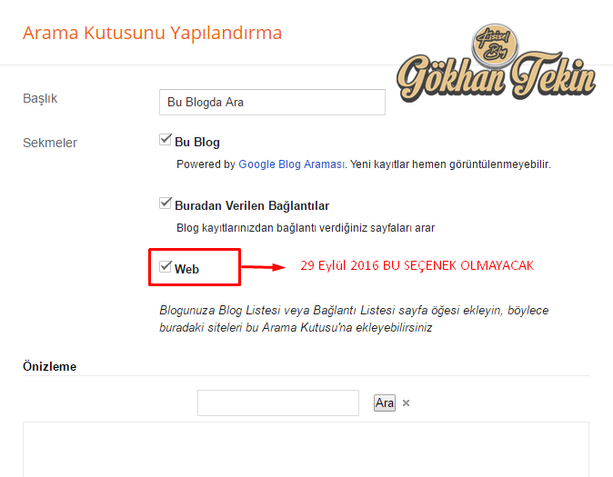 Blogger Panelindeki 29 Eylül 2016 Tarihli Search Gadgeti Hakkında Bilgilendirme