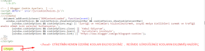 </head> kodunun hemen üzerine ekleyeceğiniz kodlar. Aşağıdaki kodları </head> kodunun hemen üzerine ekleyin.